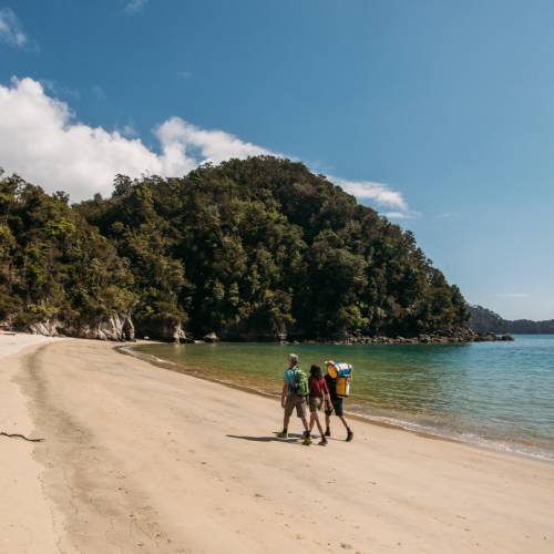 Highlights include walking across a 47-metre suspension bridge, seeing the Awaroa Inlet – the largest tidal estuary in the National Park, and visiting a nature-made waterslide at Cleopatra's Pool.